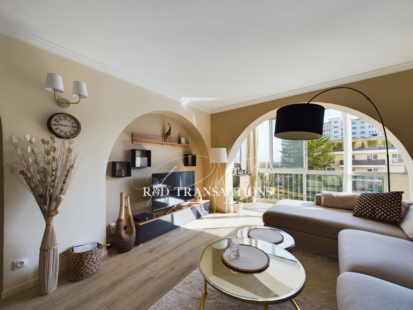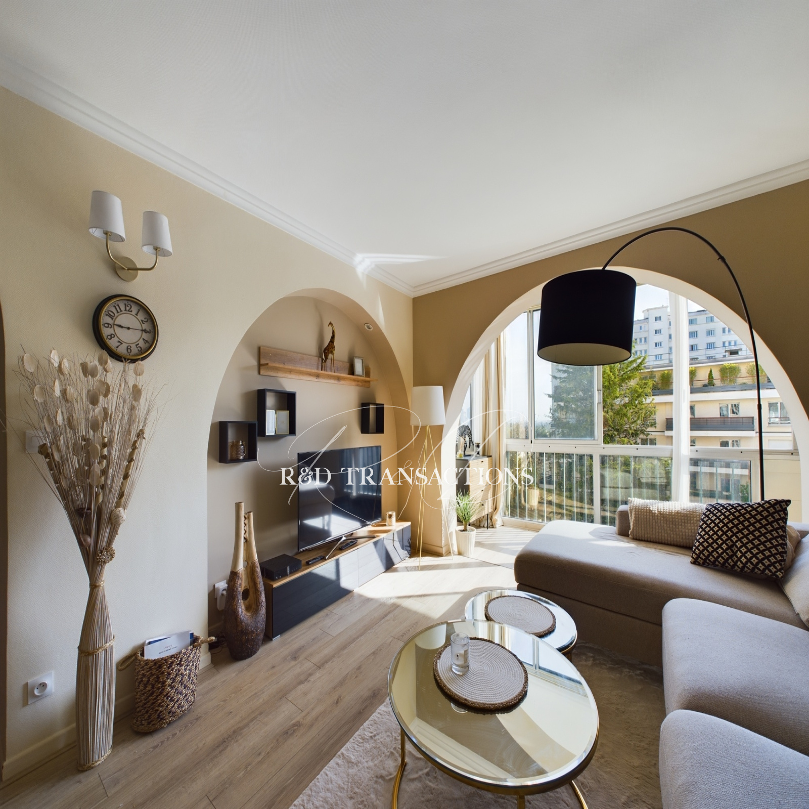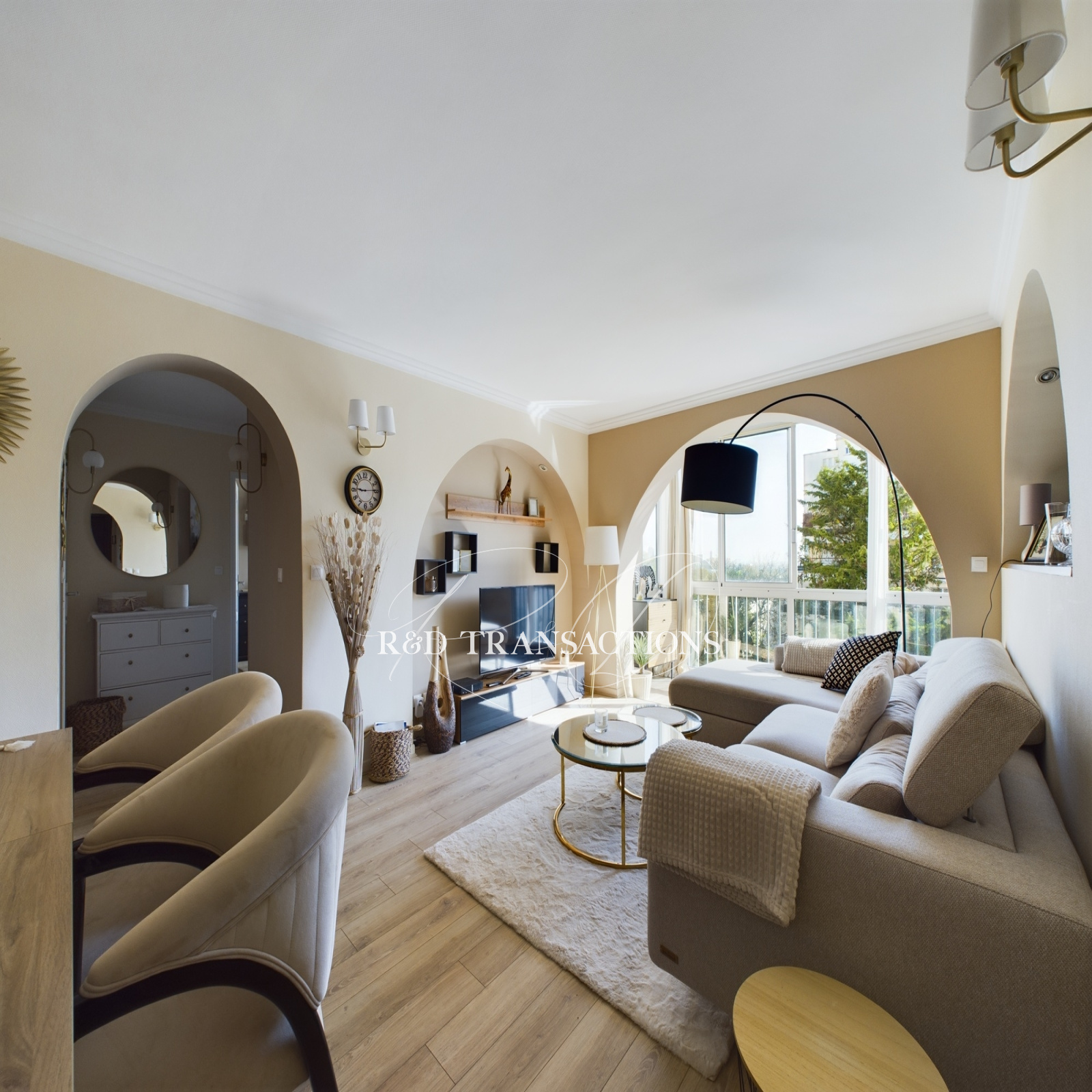 Saint Cloud Val d'Or, à proximité à pied de toutes commodités ( transports, commerces et écoles) , au sein d'un parc arboré, un appartement très lumineux avec vue dégagée de 70,6 m2 ( 62,06 surface carrez) situé au 2ème étage par ascenseur entièrement rénové et décoré avec goût . Il est composé d'une entrée, d'un séjour avec cuisine semi ouverte, de deux chambres et d'une salle de bain. Une cave et un emplacement libre de parking au sein de la résidence complètent le bien. Bon DPE. Pas de procédure .