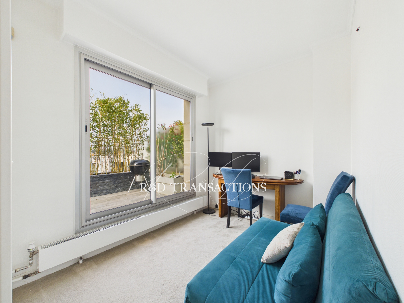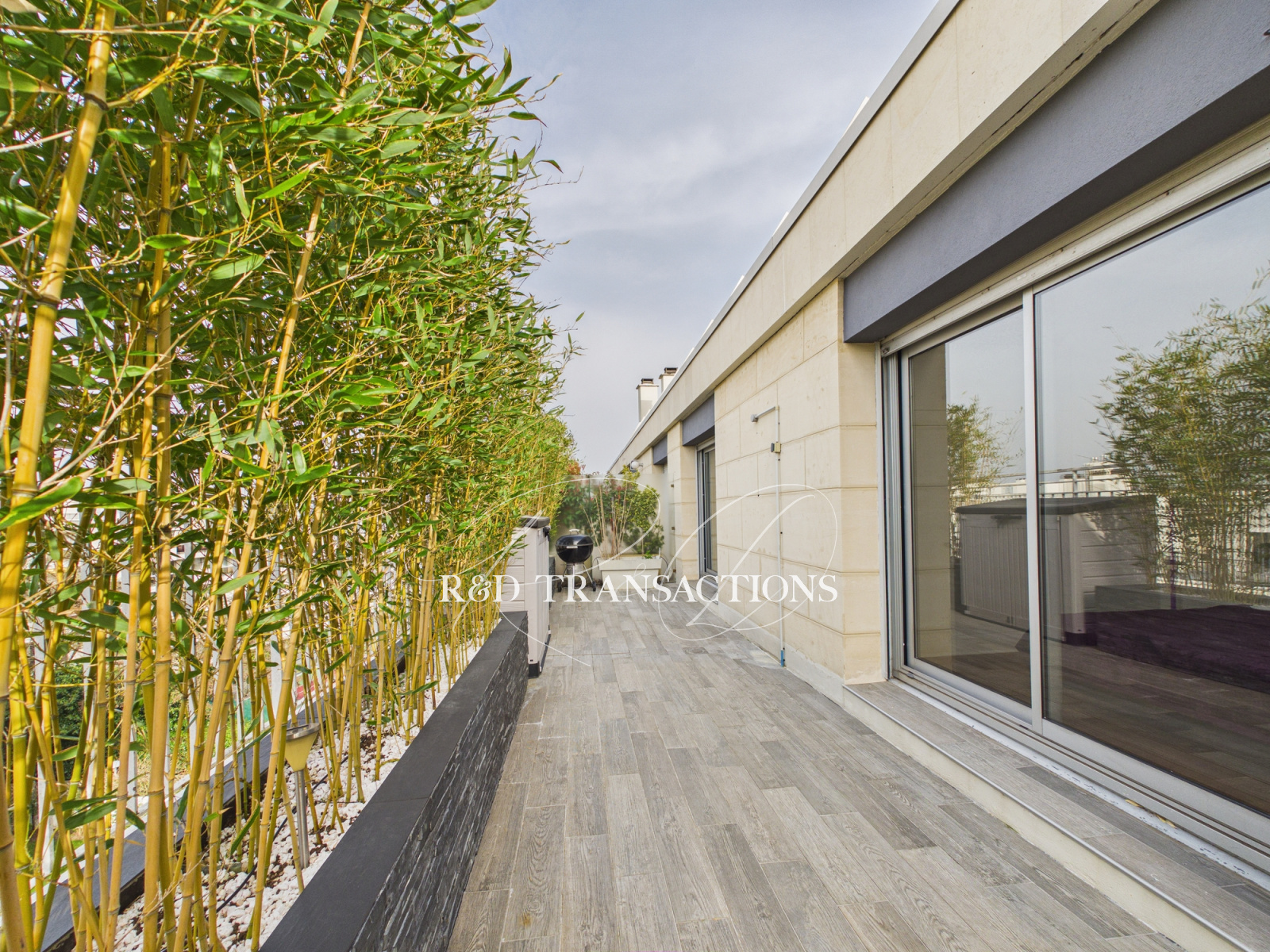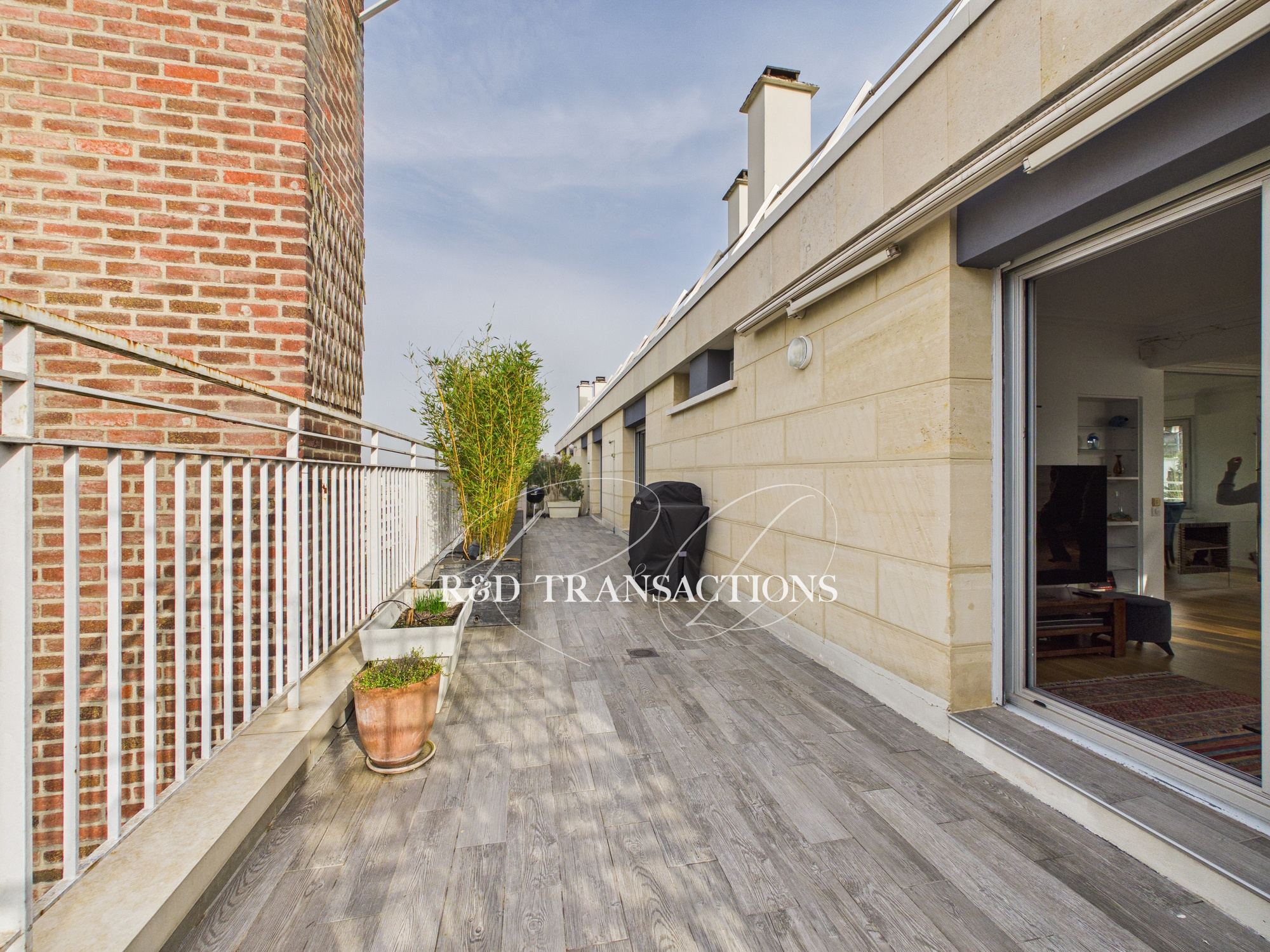 Saint Cloud rue Marie Bonaparte au sein d'une belle copropriété en pierre de taille ( 1970) , au calme , un appartement duplex de 127 m2 carrez en dernier étage (seul à l'étage) composé au niveau supérieur (100 m2) d'une belle entrée desservant un double séjour , lumineux avec 3 expositions s'ouvrant sur une terrasse de 46 m2 avec vue Paris, cheminée, une cuisine semi ouverte, 2 chambres ( possibilité 3) , une salle de bain, une buanderie, 2 WC, Nombreux rangements. Au niveau inférieur, un studio de 27 m2 composé d'une entrée, d'une séjour/chambre s'ouvrant sur un balcon, une grande salle de bain et rangements. Belles prestations ( volets electriques, climatisation, parquet massif) . Une cave et un box (30 m2) pour un stationnement double complètent le bien. Gardien. Possibilité de rediviser les lots. Nombreux travaux entrepris au sein de la copropriété dont le ravalement , l'isolation / étanchéité de la toiture et la rénovation des parties communes. Prix : 978 000 € FAI dont 3% d'honoraires charge acquéreurs.